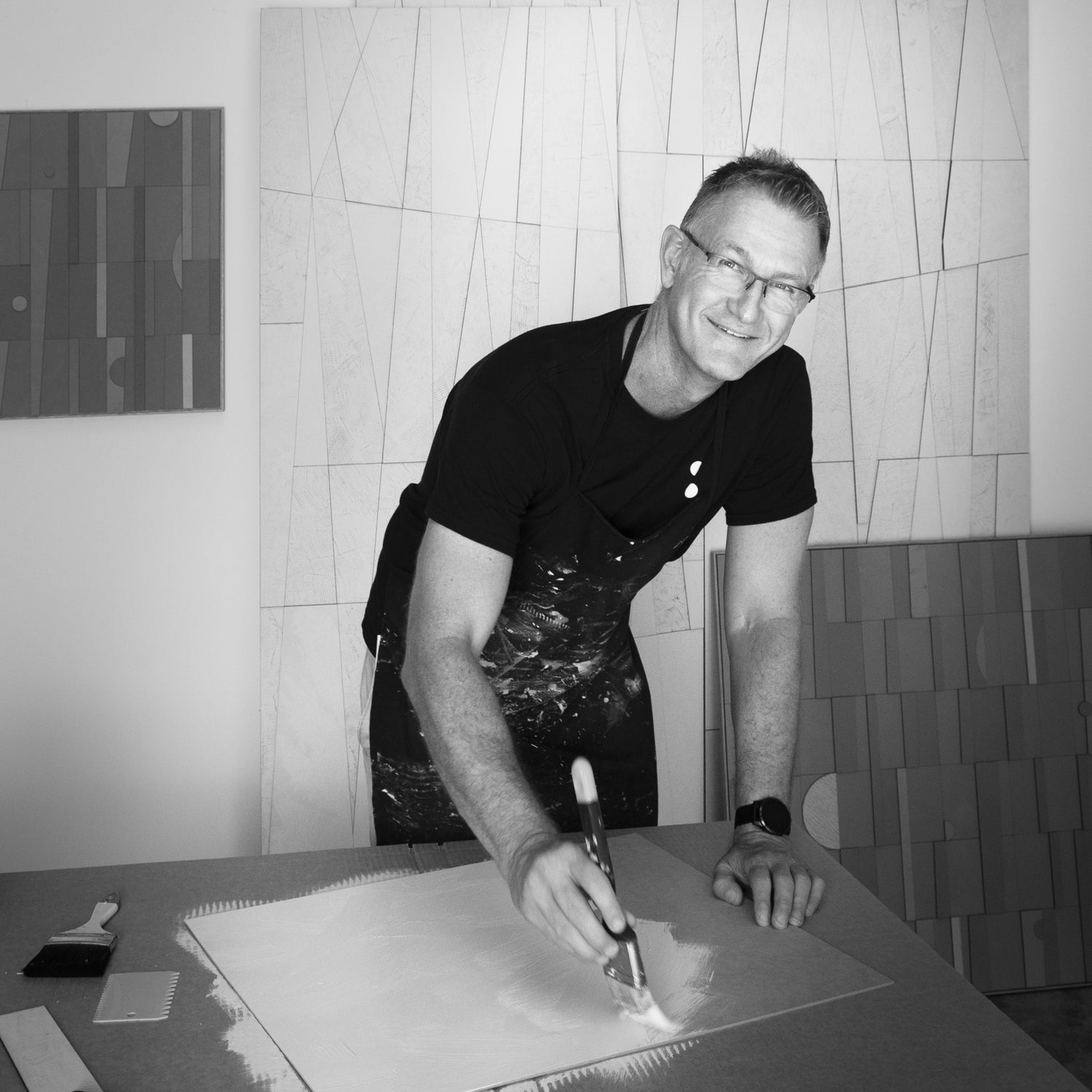 Thomas is a Brisbane-based abstract artist with roots in South Africa. After graduating with a degree in architecture from the University of Pretoria in 1996, he began his architectural career and established his own practice in 2002. Together with his wife, Sureen, an interior architect who later joined the practice, he designed numerous award-winning and widely published high-end residential projects.